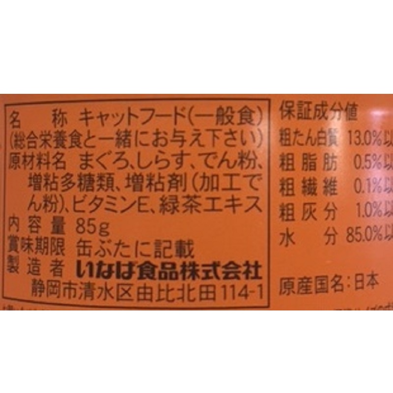 まぐろ、しらす、でん粉、増粘多糖類、増粘剤(加工でん粉)、ビタミンE、緑茶エキス