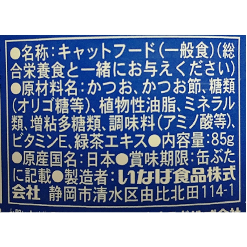 - かつお、かつお節、糖類(オリゴ糖等)、植物性油脂、ミネラル類、増粘多糖類、調味料(アミノ酸等)、ビタミンE、緑茶エキス