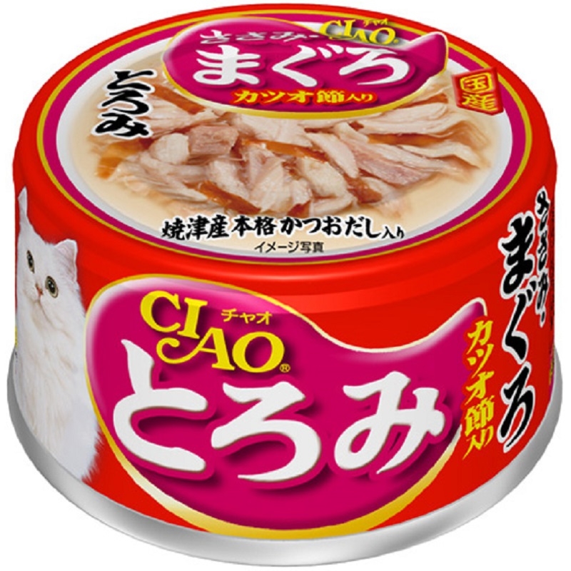 低脂肪高タンパクの鶏ささみとキハダマグロをフレークにし、猫ちゃんお好きなかつお節をトッピング。