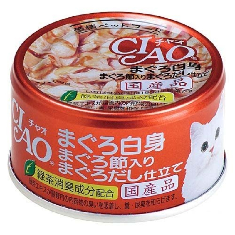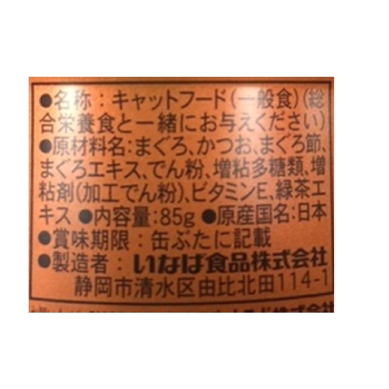 - まぐろ、かつお、まぐろ節、まぐろエキス、でん粉、増粘多糖類、増粘剤(加工でん粉)、ビタミンE、緑茶エキス