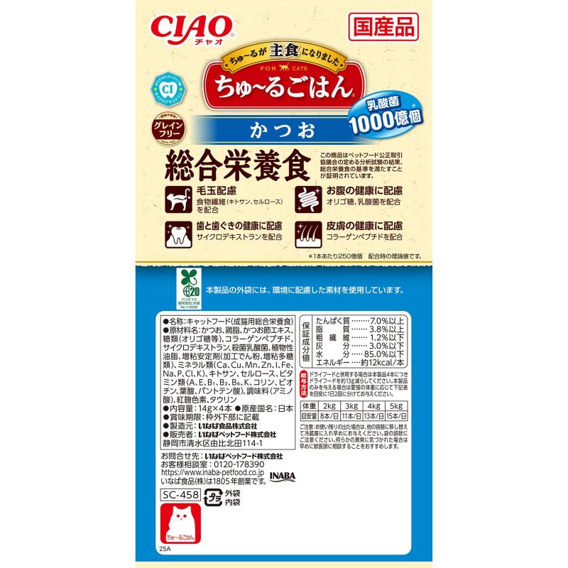 - かつお、鶏脂、かつお節エキス、糖類(オリゴ糖等)、コラーゲンペプチド、殺菌乳酸菌、サイクロデキストラン、