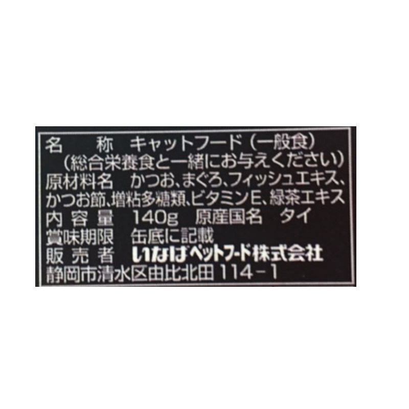 - かつお、まぐろ、フィッシュエキス、かつお節、増粘多糖類、ビタミンE、緑茶エキス