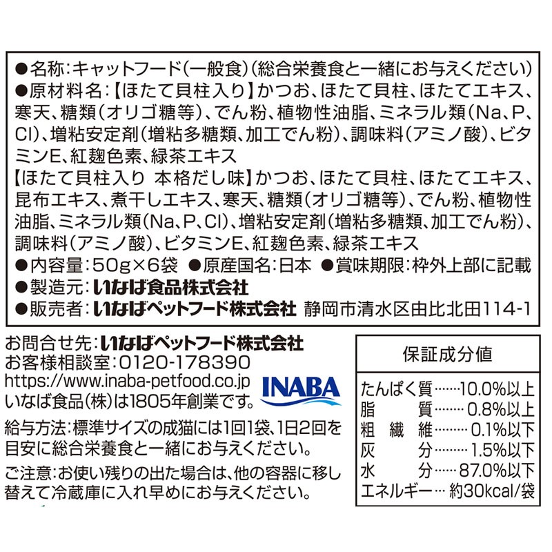 - 鶏肉(ささみ)、かつお、かつお節、かつお節エキス、タンパク加水分解物、増粘多糖類、ビタミンE、紅麹色素、