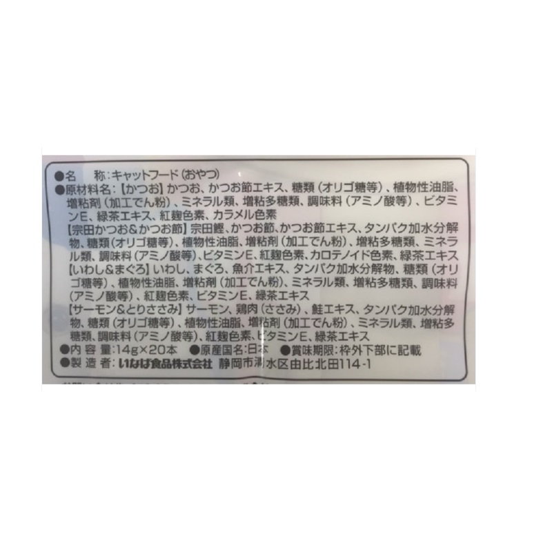 - かつお、かつお節エキス、糖類(オリゴ糖等)、植物性油脂、増粘剤(加工でん粉)、ミネラル類、増粘多糖類、