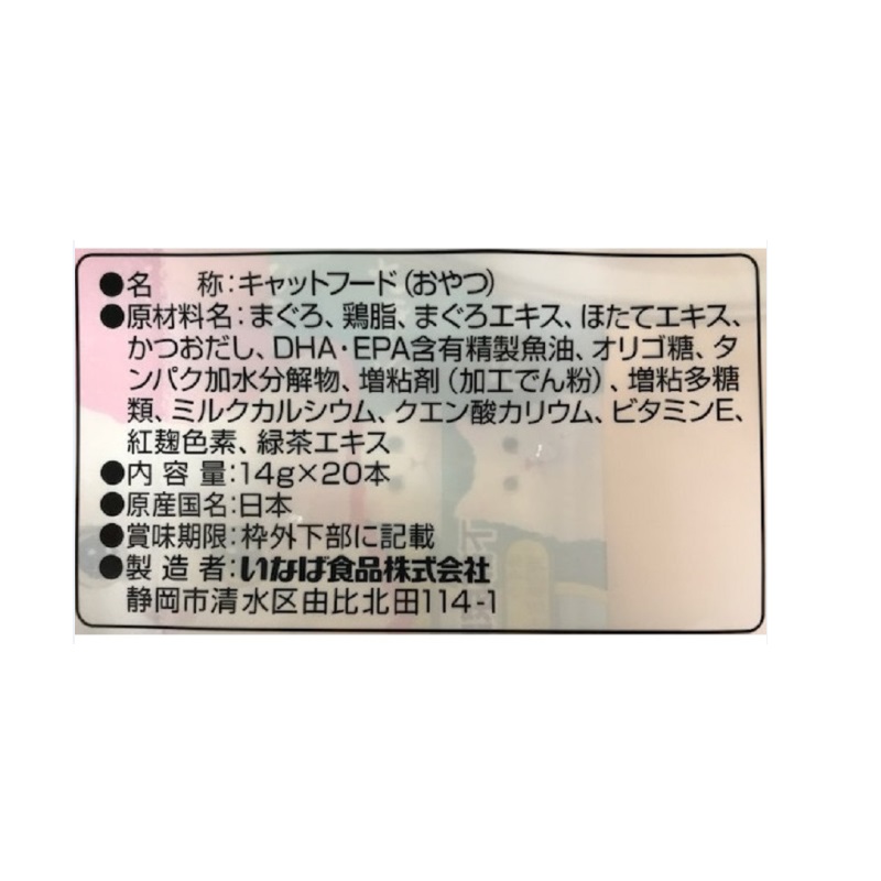 - まぐろ、鶏脂、まぐろエキス、ほたてエキス、かつおだし、DHA・EPA含有精製魚油、オリゴ糖、タンパク加水分解物、
