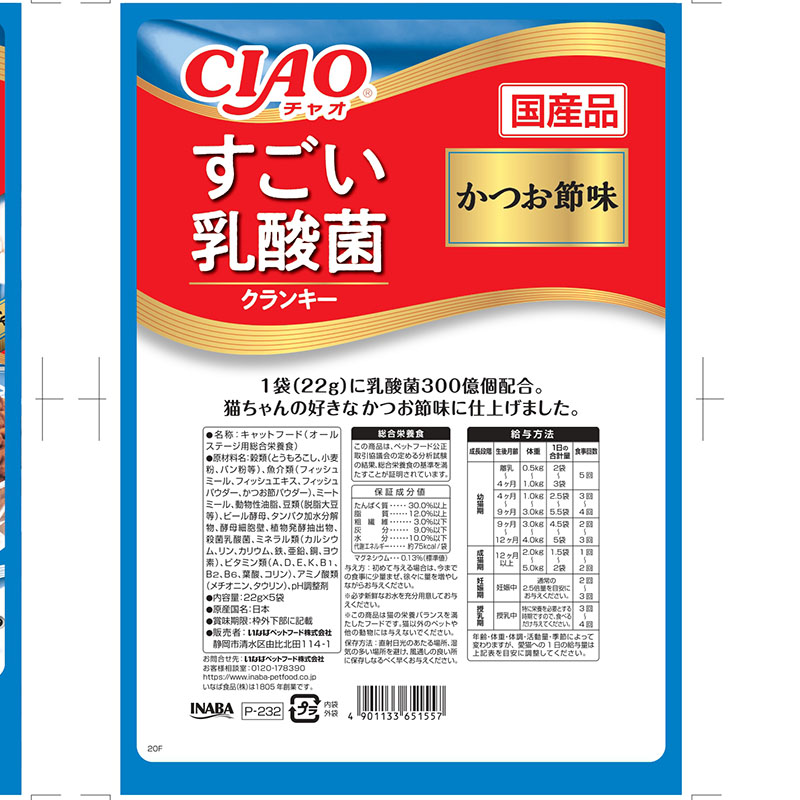 かつお節パウダー)、ミートミール、動物性油脂、豆類(脱脂大豆等)、ビール酵母、たん白加水分解物、