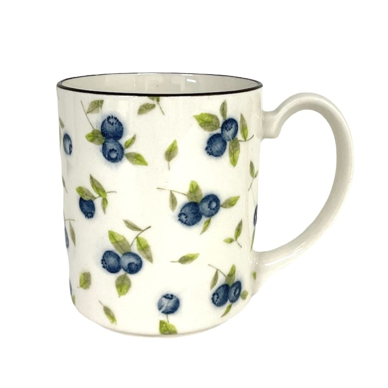 日本製。美濃焼の軽くて持ちやすいマグカップです。ベリーの柄が可愛いマグカップです。
