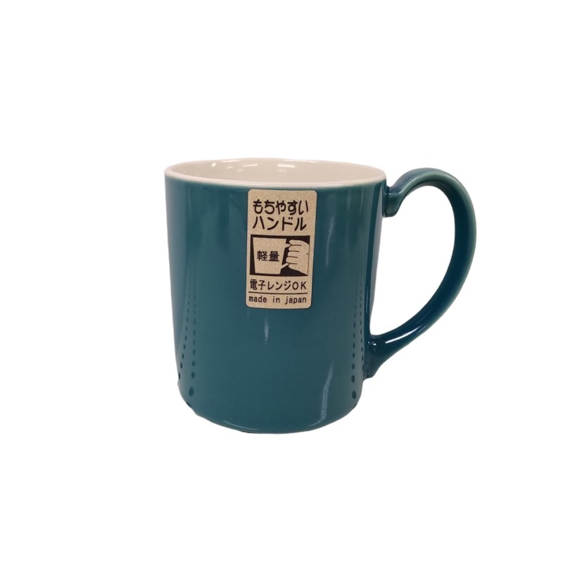 日本製。大きめのハンドルなので持ちやすく飲みやすいマグカップです。