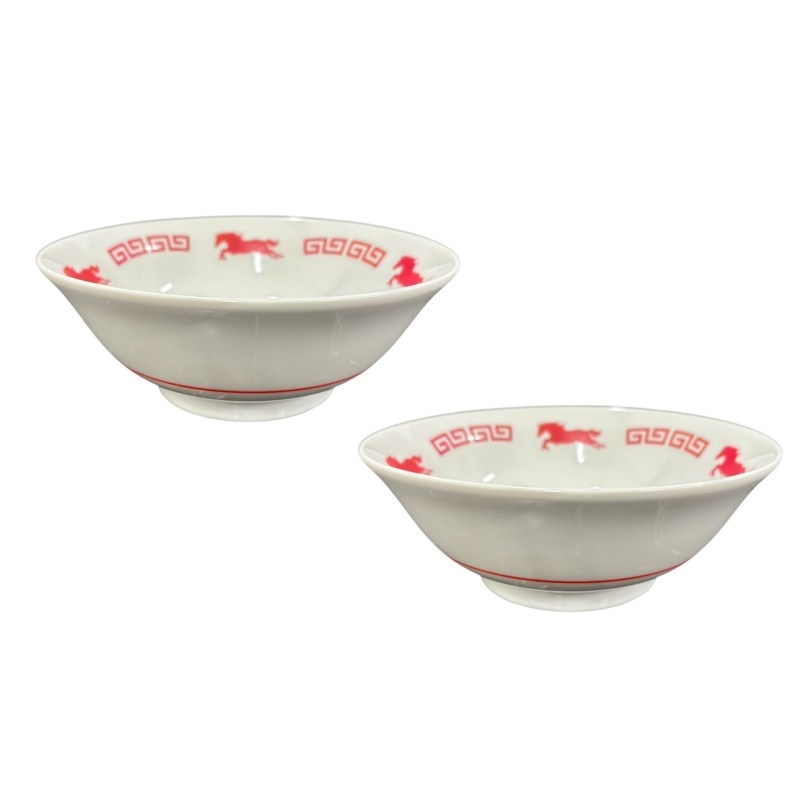 ラーメン丼2個のラーメン丼ペアセットです。2026年の干支跳ね午の柄のラーメン丼です。