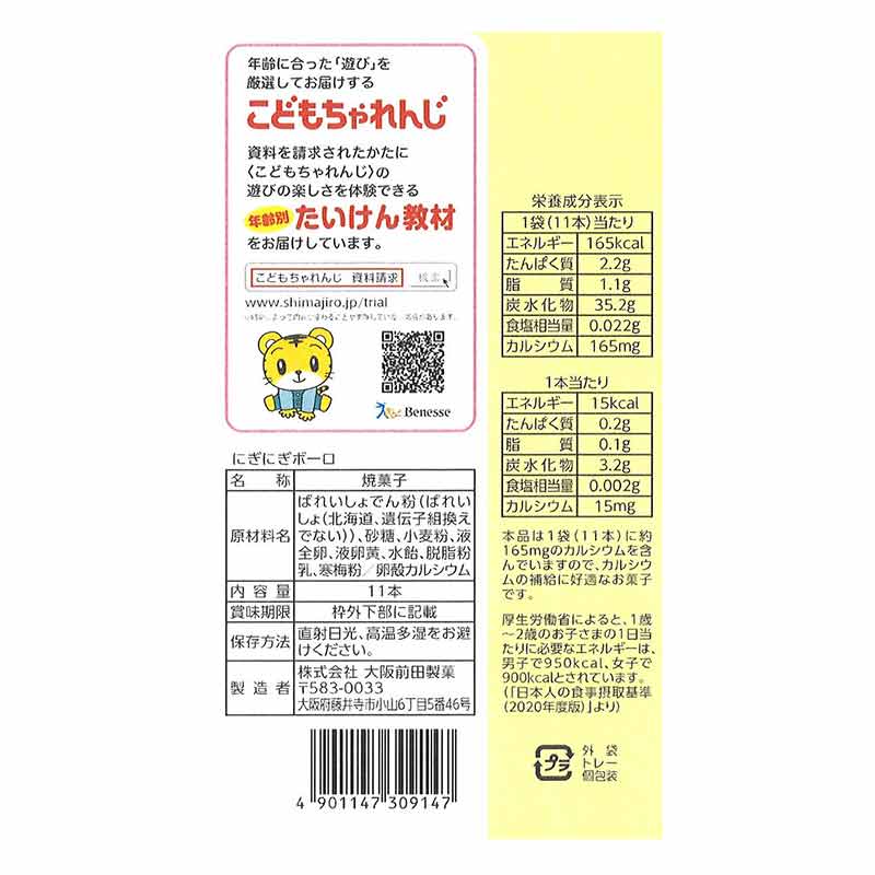 しまじろうの1歳頃のお子様から食べて頂ける、スティックタイプのたまごボーロです。