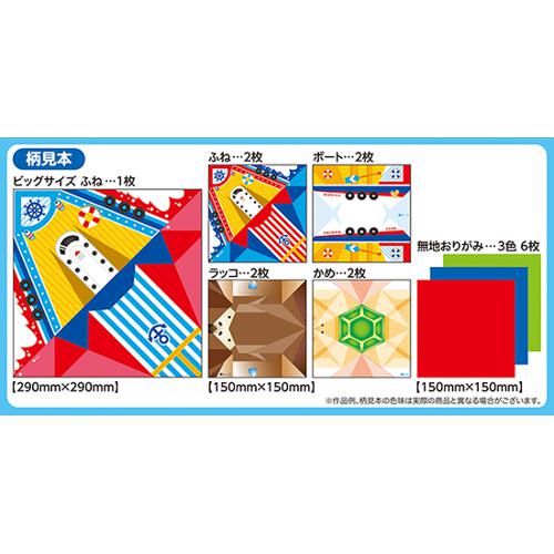れ、無地おりがみも入っているので、自由に折って楽しめます。 柄紙大1柄1枚、柄紙4柄8枚、無地おりがみ3色6枚