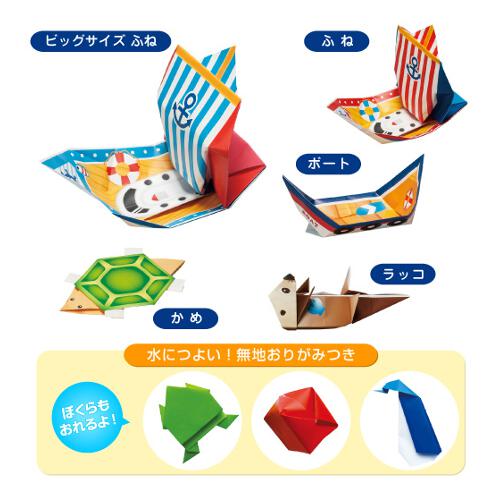 水につよい耐水紙を使用しておりますので、おふろやプールなどであそべます!29cmの大きなサイズのおりがみで大きな船がつく