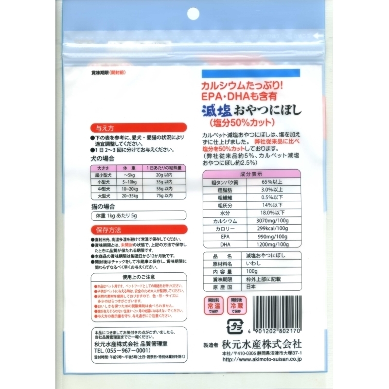 塩を加えずに仕上げた、たんぱく質・カルシウムたっぷりのにぼしです。