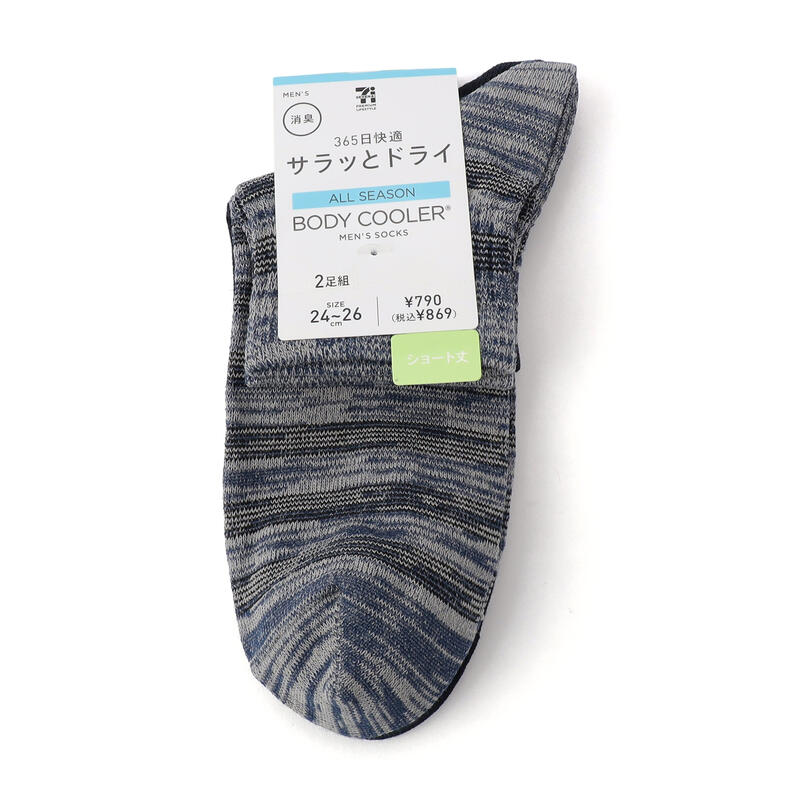 - 【24-26cmのみ】ボディクーラー ボーダー柄ショート丈ソックス 2足組/セブンプレミアムライフスタイル