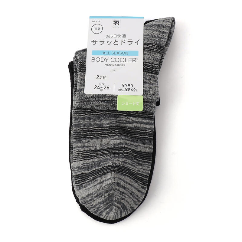 - 【24-26cmのみ】ボディクーラー ボーダー柄ショート丈ソックス 2足組/セブンプレミアムライフスタイル