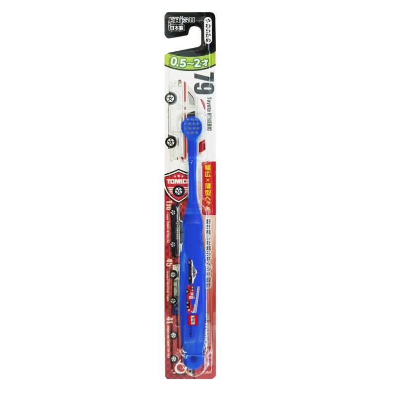 - ミニカーのトミカがハブラシになりました。先端かため植毛なので奥歯磨きに最適です。