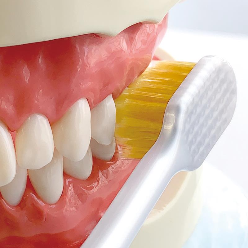 ●超先細毛と、歯垢をしっかり落とすフラット毛の2種類の毛先で歯周ケア。