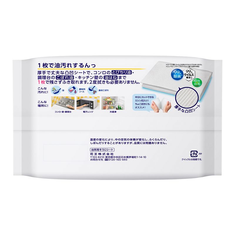 植物由来洗浄成分配合の丈夫な凸凹シートだから、1枚でキッチンの色々な場所の汚れをまるごとふき取れます