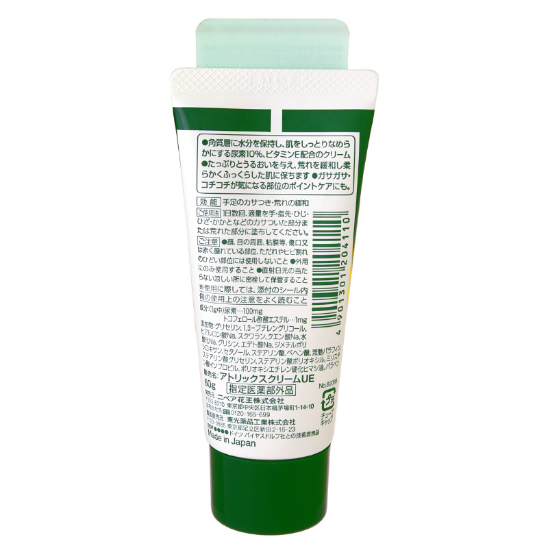 角層に水分を保持し、肌をしっとりなめらかにする尿素0%、ビタミンE配合のクリーム。たっぷりのうるおいを与え、荒れを緩和し