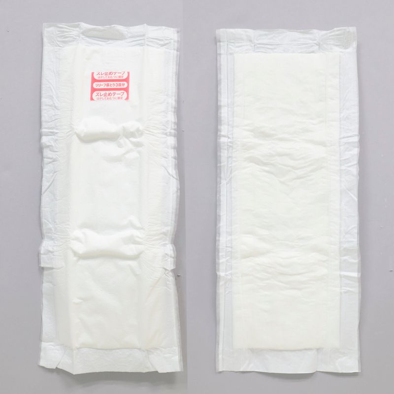 テープ式、テープ式にもなるパンツと一緒に使う、モレ防止と肌へのやさしさを考えた尿とりパッドです。