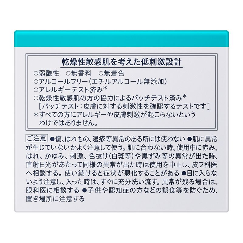 消炎剤(有効成分)配合。肌荒れを防ぐ。とてもしっとりするのに、ふわっと軽い使い心地。