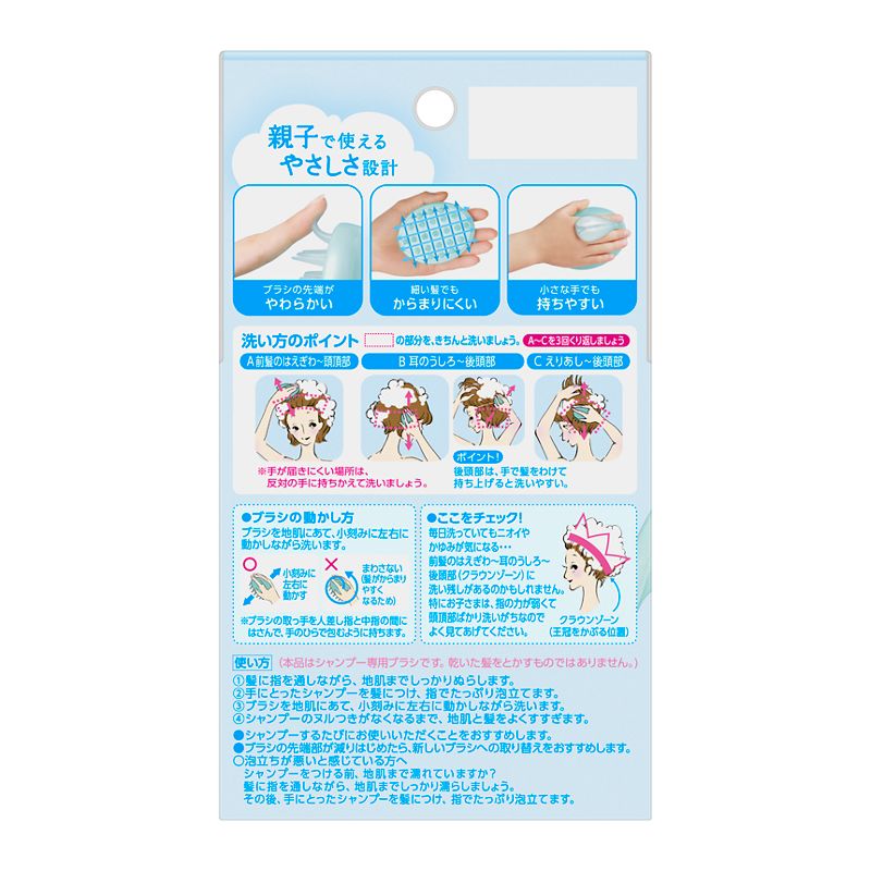 ○親子で使えるやさしさ設計:細く長い髪でもからまりにくい/ブラシの先端がやわらかいから、地肌にやさしい/