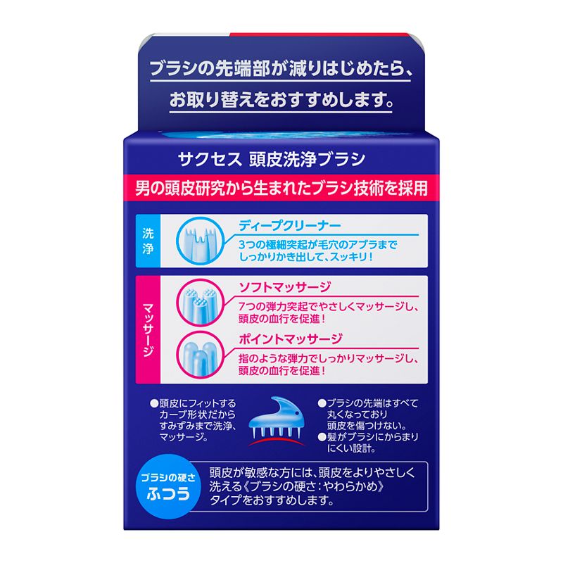 ブラシの先端はすべて丸くなっており頭皮を傷つけません。髪がブラシにからまりにくい設計です。ブラシの硬さ「ふつう」。