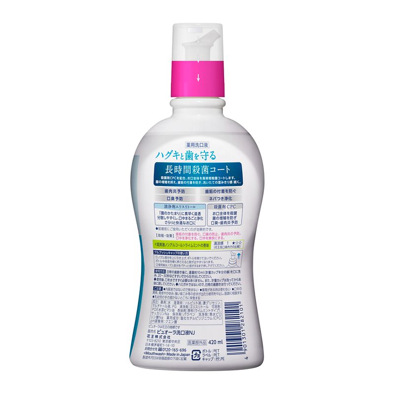 分散しやすくする清浄剤エリスリトール、原因菌を殺菌する殺菌剤CPC(塩化セチルピリジニウム)を配合。