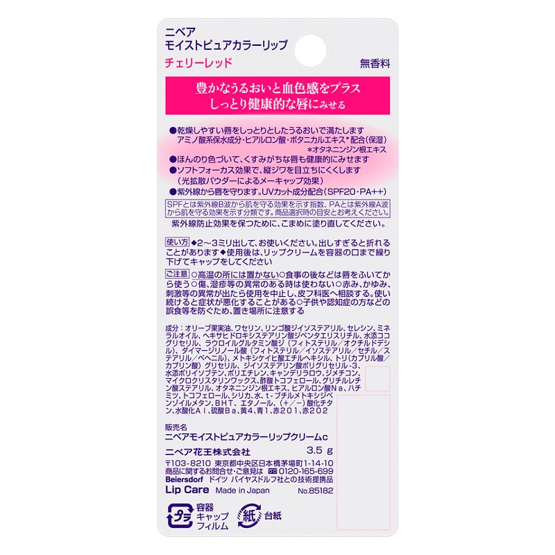 紫外線から唇を守ります。UVカット成分配合(SPF20・PA++)
