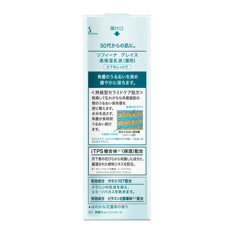 50代からの肌に。メラニンの生成を抑え、シミ・ソバカスを防ぐ。うるおったハリ肌へ導く薬用乳液。