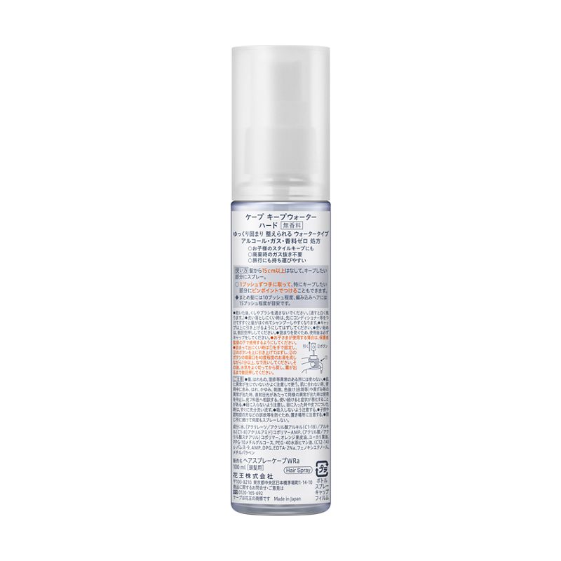 アルコール、ガス、香料 ゼロ処方。ゆっくり固まり 整えられる ウォータータイプのヘアスプレー。