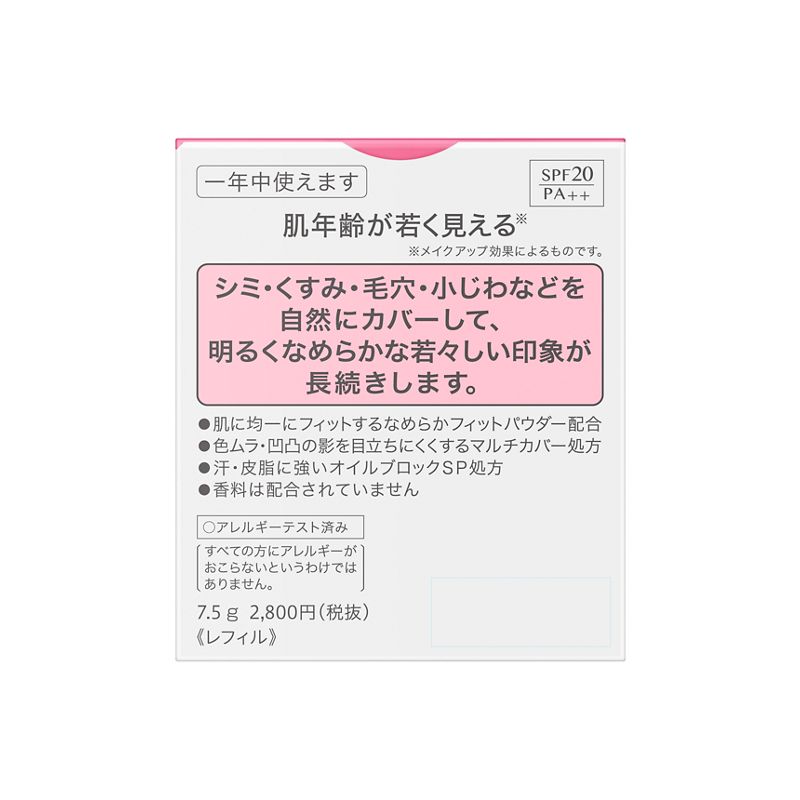 明るくなめらかな若々しい印象が長続きするパウダーファンデーション。SPF20PA++。スポンジ付。レフィル。