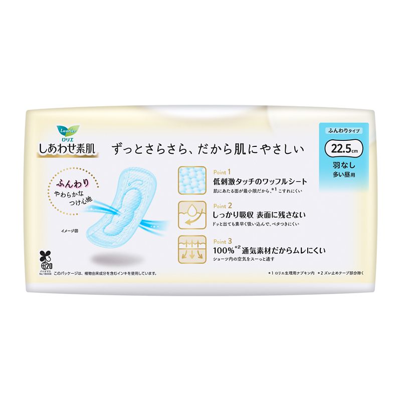 ●低刺激タッチのワッフルシート。肌にあたる面が最小限だから(ロリエ生理用ナプキン内)、こすれにくい。