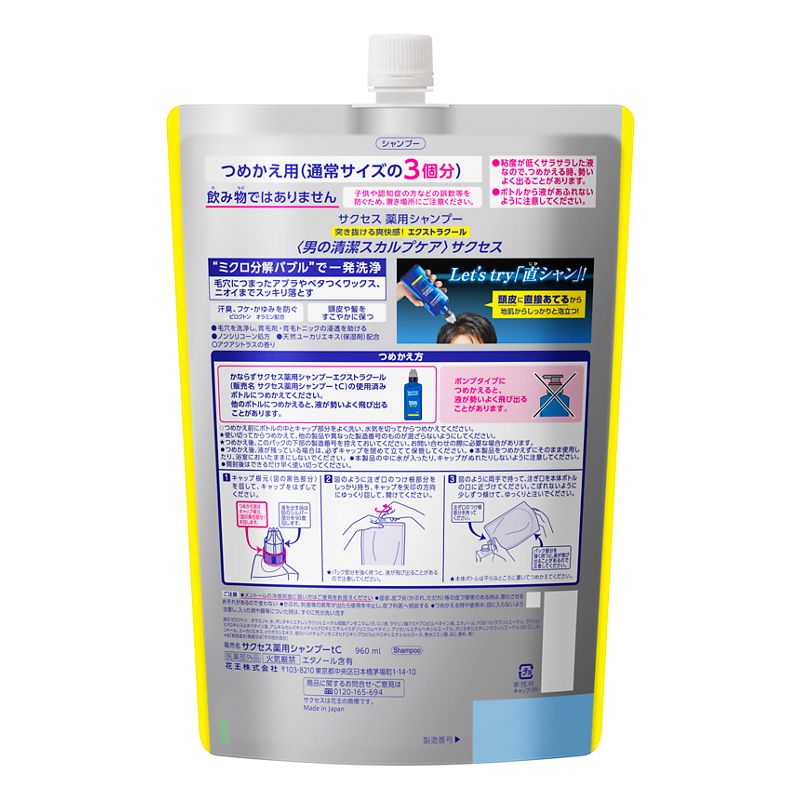 花王 サクセス 薬用シャンプー エクストラクール つめかえ用 大容量