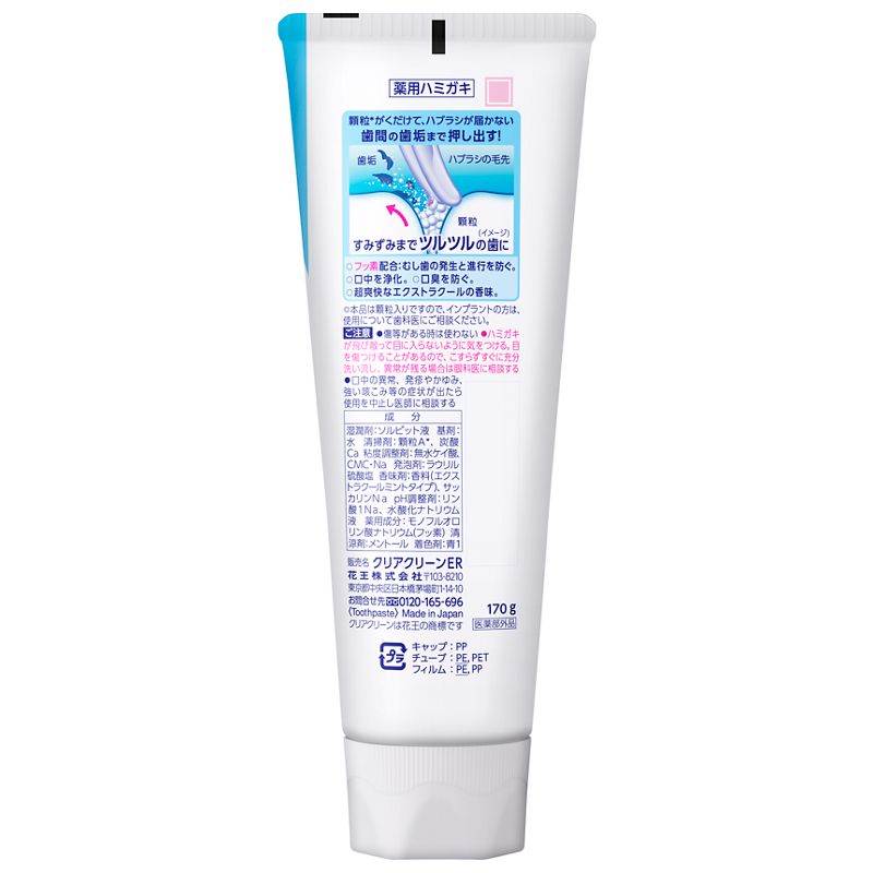 すみずみまでツルツルの歯に。フッ素配合:むし歯の発生と進行を防ぐ。口中を浄化し、口臭を防ぐ。
