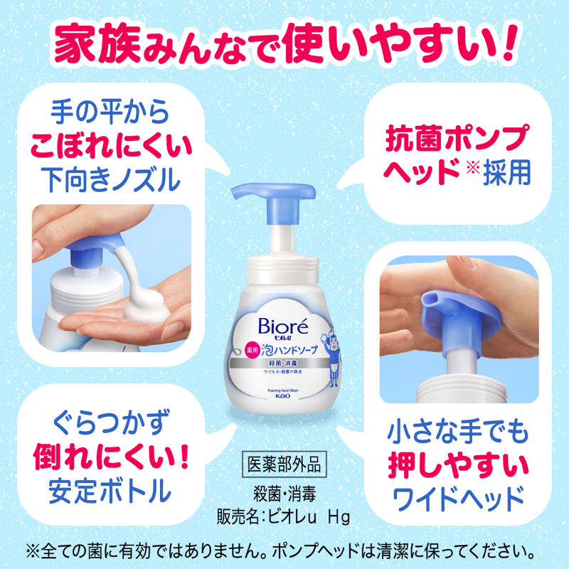 ●殺菌成分配合。汚れ、ウイルス・細菌を除去。●素肌とおなじ弱酸性。●SPT(肌清浄化技術)採用。