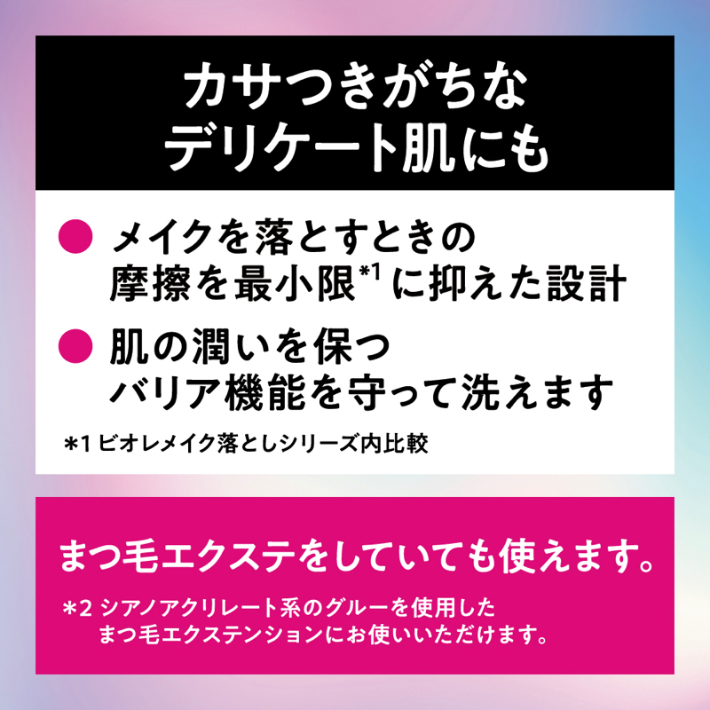 ・肌になじませるときの摩擦を最小限*に抑えた設計*ビオレメイク落としシリーズ内比較