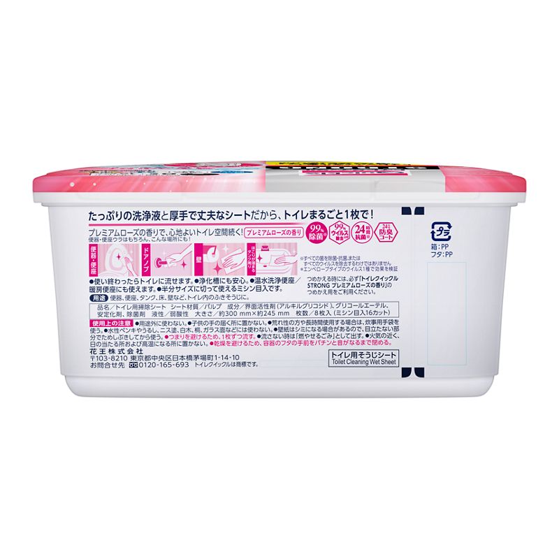 大判・厚手シートでトイレまるごとこれ1枚ですっきり。プレミアムローズの香りで、心地よいトイレ空間続く。