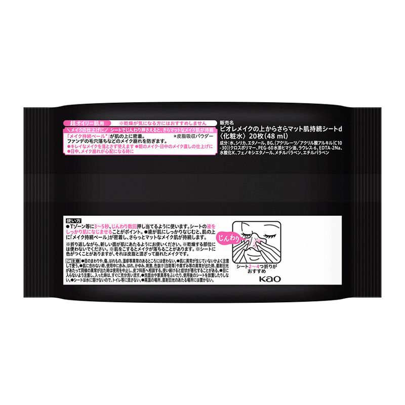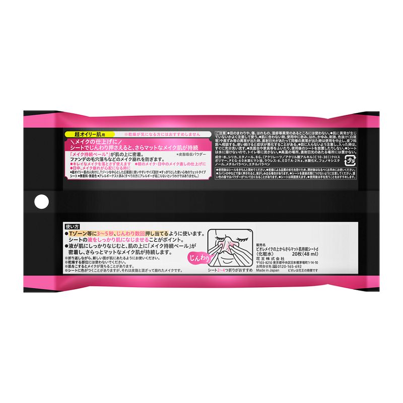 メイクの仕上げに、シートをじんわり押しあてると「メイク持続ベール」が肌の上に密着。