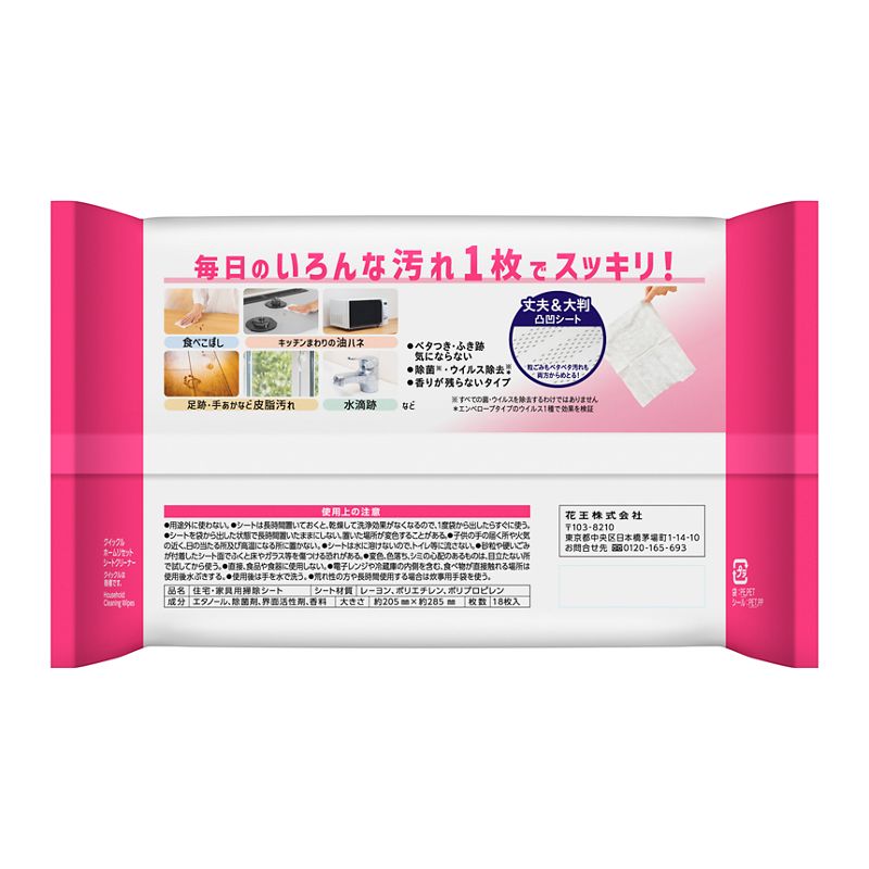 窓や床の皮脂汚れなどのベタベタ汚れ、水滴跡にも使える住居用そうじシート。
