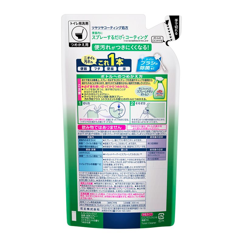 便汚れがつきにくくなるトイレ用洗剤。シトラスミントの香り。逆さスプレーでフチ裏まで届いて洗浄。