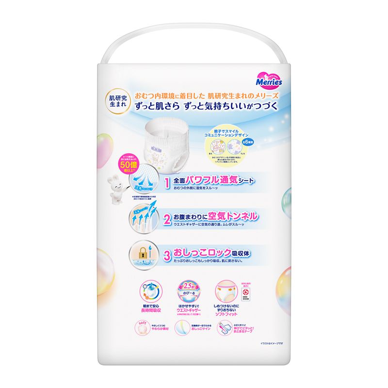 汗をかきやすい背中も肌さらさら!おむつ全体が通気性素材だから、おしっこは通さずムレだけを追い出す。
