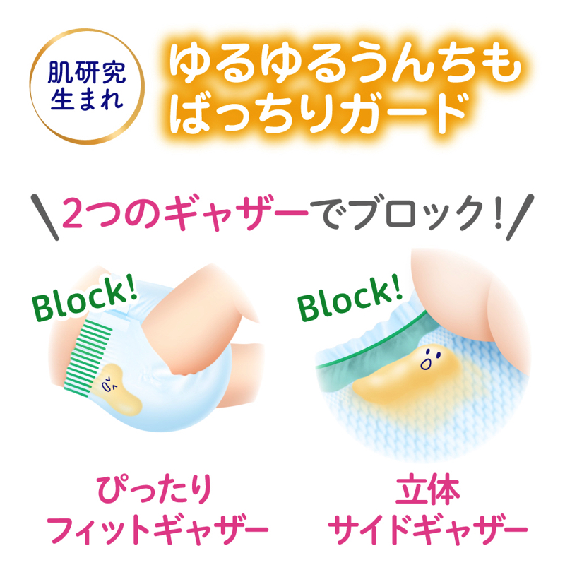 モレもしっかり防いで安心。*のばす前に対して(花王調べ)