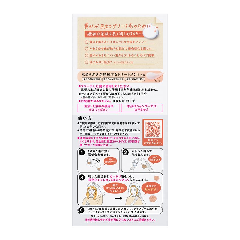 ・黄みを抑えるバイオレットの色味をブレンド。・やわらかな色が徐々に抜けて髪色変化も楽しい。