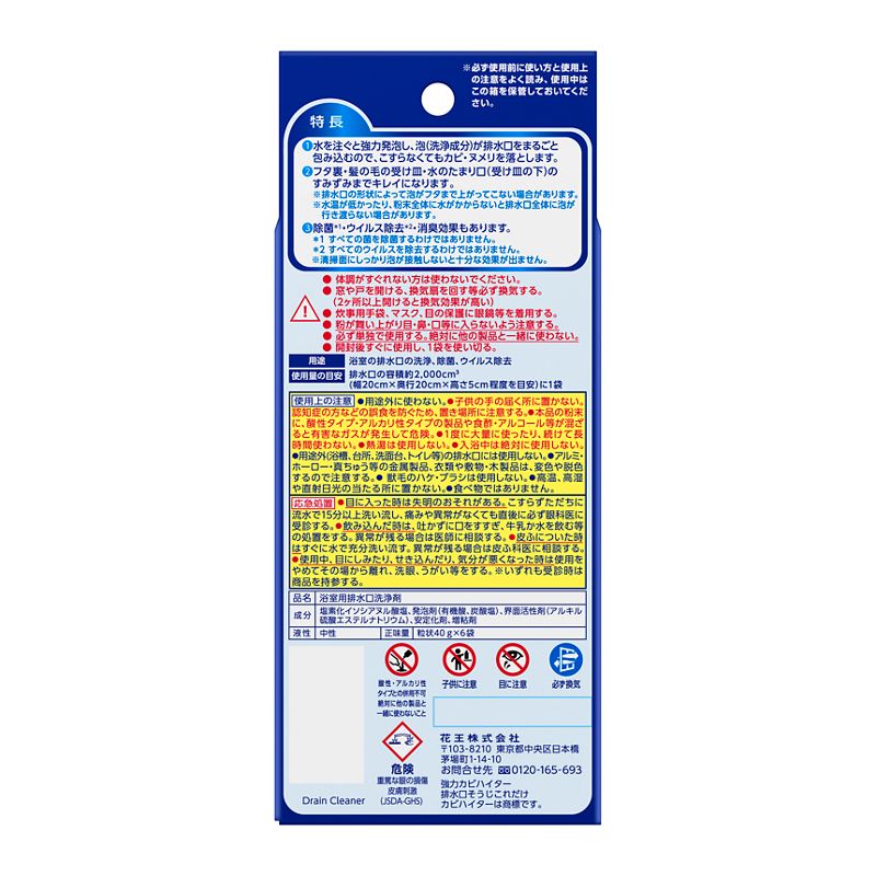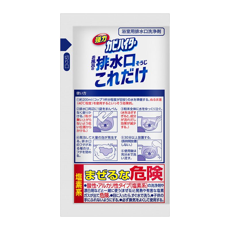 月1回のおそうじ(※1)で浴室の排水口を洗浄できる浴室用排水口洗浄剤です。粉をふりかけ、水を注ぐと超強力発泡。