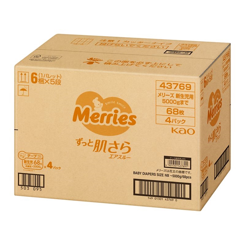 花王 メリーズ エアスルー テープ 新生児用5000gまで 272枚