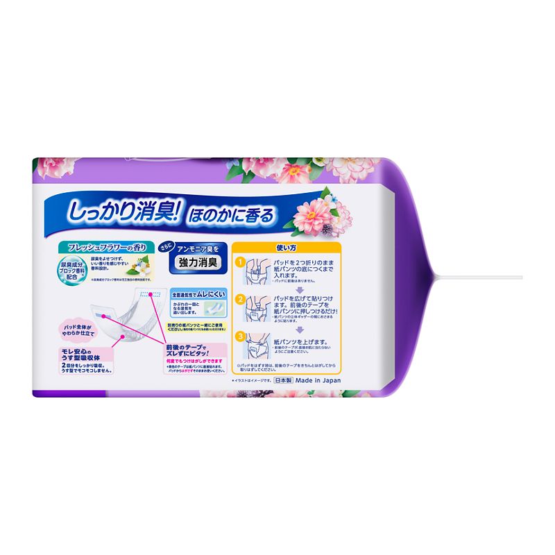 しっかり消臭!ほのかに香る(フレッシュフラワーの香り)尿臭成分ブロック香料※配合で尿臭をよせつけず、