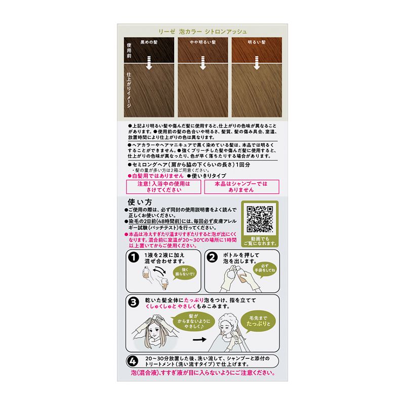 元が黒い髪でも透明感カラーに。濃密ムースの泡カラー。