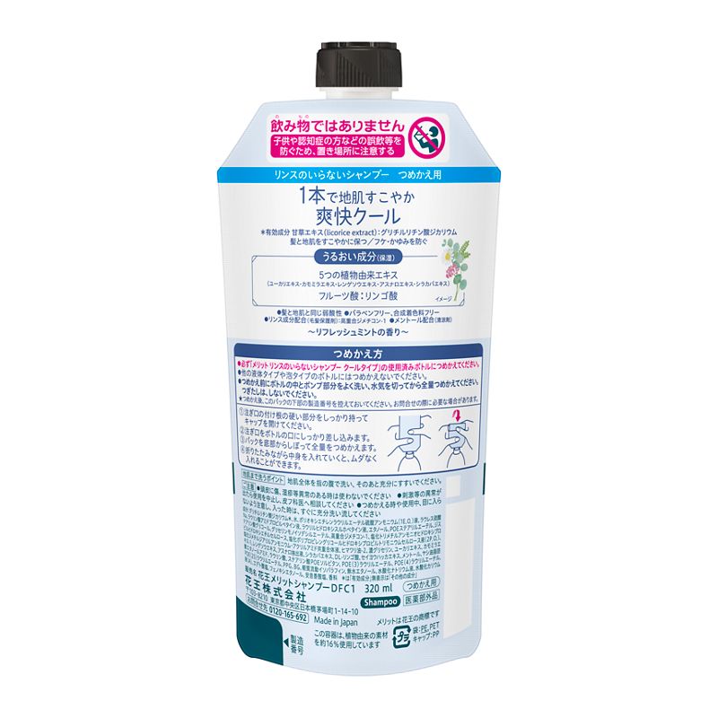●リンス成分配合(毛髪保護剤):高重合ジメチコンー1●メントール配合(清涼剤)