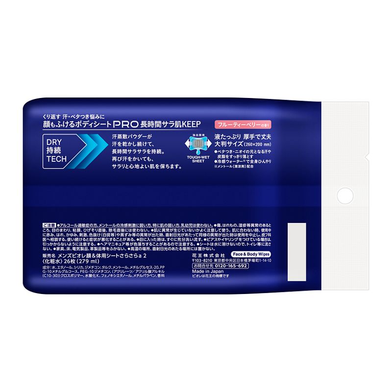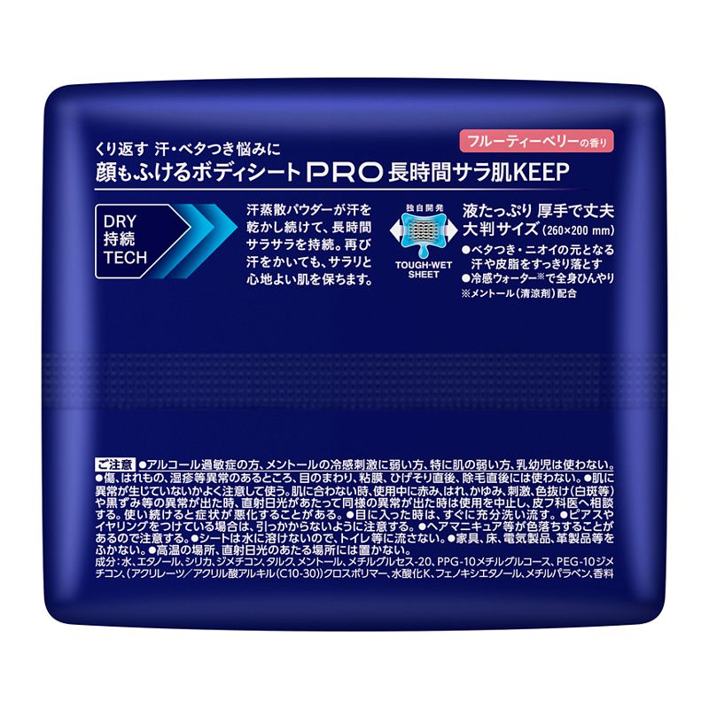 くり返す、汗・ベタつき悩みに。「DRY持続TECH」で、長時間サラ肌KEEP!顔もふけるボディシート。
